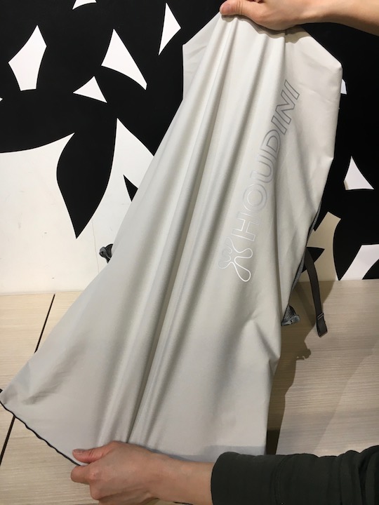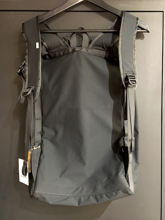 容量は20ℓで、素材はHOUDINIの冬用スノーシェルでも使われていた防水素材(Bedrock Stretch 3L Hardshell™️)で作られています。ストレッチの効くとてもしなやかな素材ですが、雨の日も中身をしっかり守ってくれます。