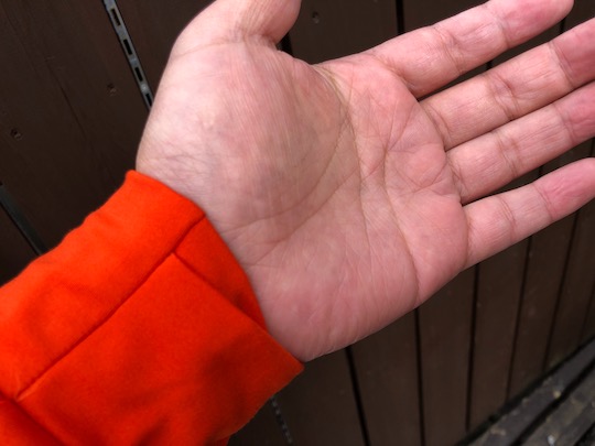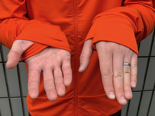 手首にはサムホール。やはり生地がしなやかなので、親指も痛くなりにくいです。