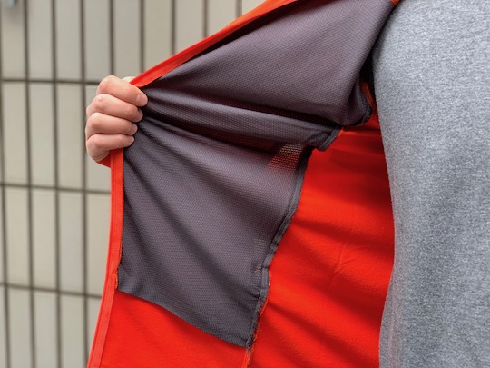 両ポケットは裏がメッシュになっているので、ベンチレーションの働きも。