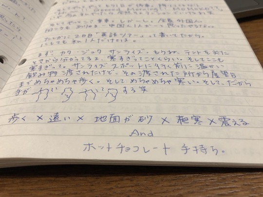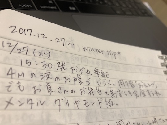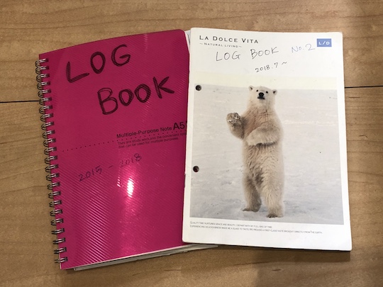 ログは、帰ってきてからではなく1日の終わりにベットで書きます。