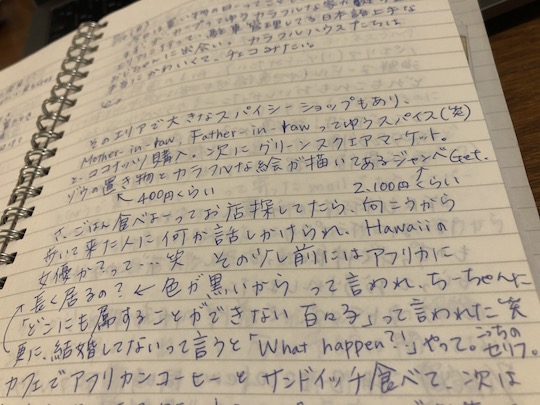 現地の人と話した内容とか、同行者が落書きしてくれた