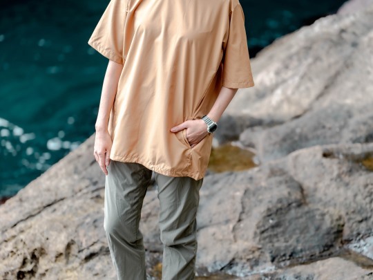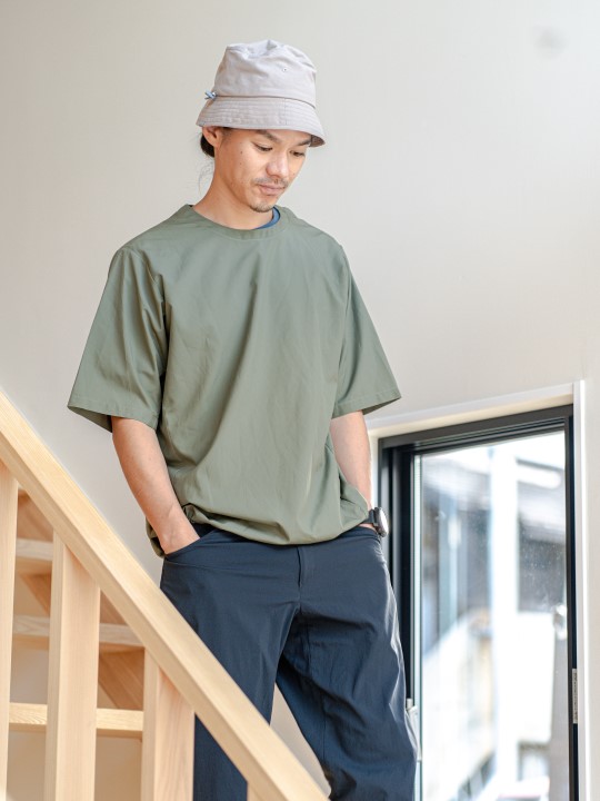 シーンやスタイルに合わせてフィットしてくれる、不思議なウィンドシェル素材のTシャツです。