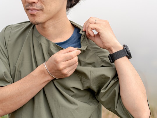 半袖であることで、ベストより耐候性がある形状にも関わらず、透湿性の高い素材のおかげでベストと遜色ない快適性を得られるのです。