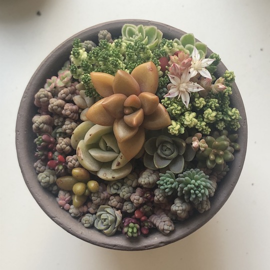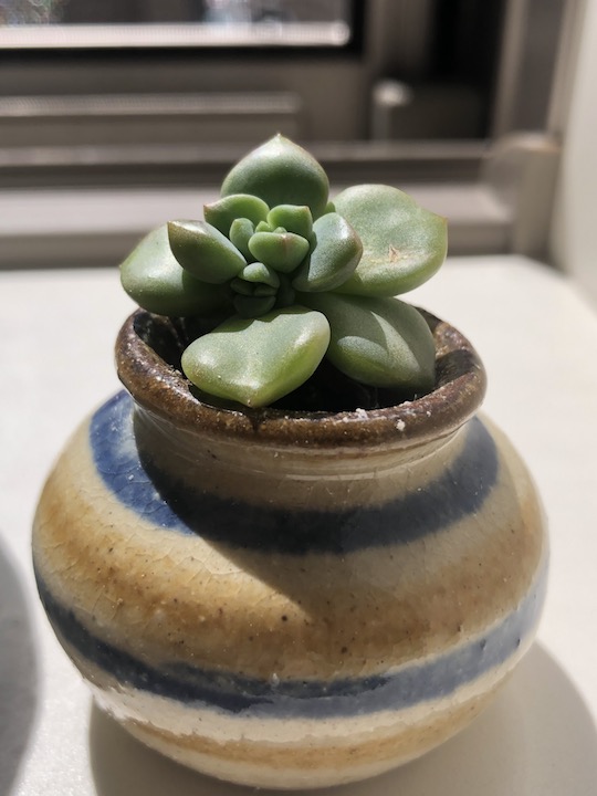 去年買ったやちむんのチビ陶器に入る多肉ちゃんたちが