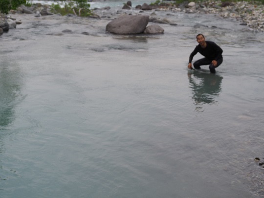 そうだねって、待て!!この時期の白馬の川は、雪解け水です。