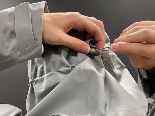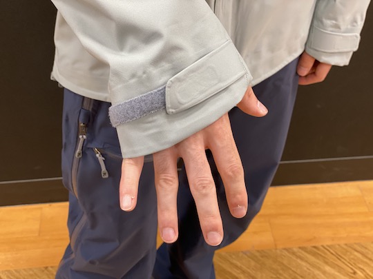 袖のベルクロ。マジックテープで自在に幅を調節できます。