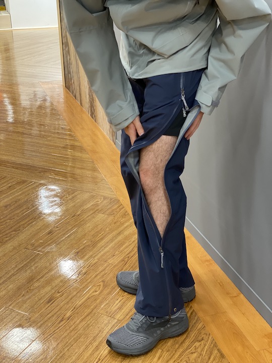 ベンチレーションは足元まで大きく開き、ブーツを履いたままでも脱ぎ着が楽です。
