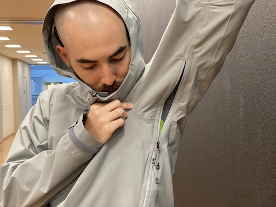 他の防水ハードシェルジャケットとの大きな違いがこのやわらかい生地と着心地。