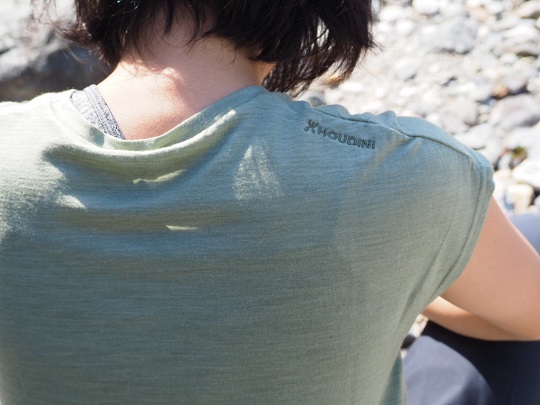 ロゴは右肩後ろに刺繍でさりげなく。シンプルなのでタウンユースからヨガ、クライミングなどどんなシーンでも合わせやすいです。