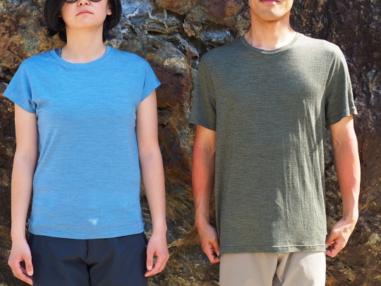 ”メリノウール”といえば冬のイメージの方が多いかと思いますが、織り方やウールの細さに応じて暖かくもなれば涼しくもなる素材です。吸湿性に優れ繊維の内側に水分を留めるので、汗をかいても生地が身体に張り付きにくく、汗冷えを起こしにくいのも特徴です。