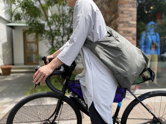 街着でももちろん使えますが私は自転車に乗るときレインウエア+防寒着としてサドルバッグに忍ばせています。
