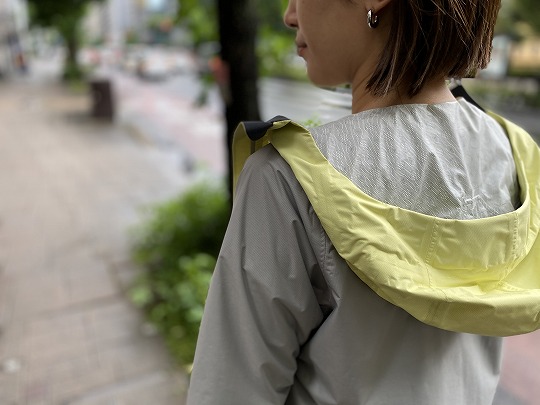 フードがついており計算された形とドローコードでの調節が可能です。