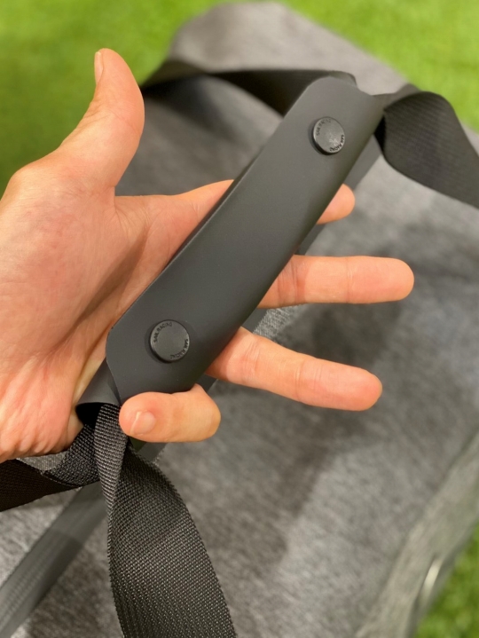 手持ち時のハンドル部分はボタンで両サイドをまとめ、握り心地の良いラバーを使用しております。