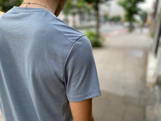 なめらかな肌触りで艶のある上品な生地。それでいてどんな動きにも対応してくれるTシャツです。