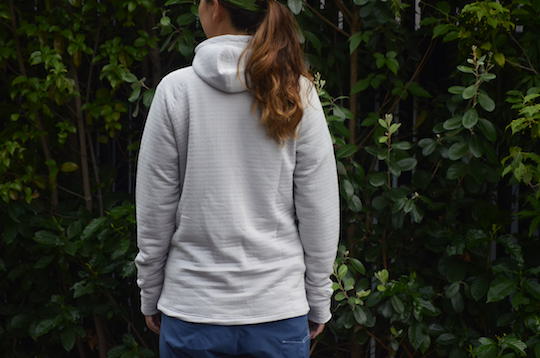 Power Houdiの424gに比べるとPower Air Houdiは584gと重量感はありますが、表面が滑らかな為ベタつかず、汗をかいた後すぐに着ても不快感がないのが嬉しいところです。