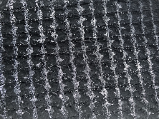 太陽に透かして見るとこんな感じ。白く見えるところが生地が凹んでいるところ。