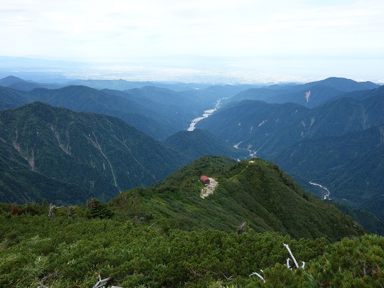 早月尾根は登ってきたルートから富山湾まで見渡せて、いかにこの山が切り立っているのか分かりますね。