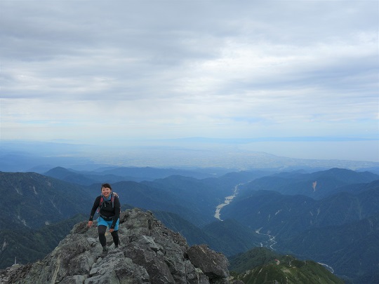 シッキーと僕は立山方面から登ったことがありますが、初めてやってきた2人もあり過ぎるくらいの登り甲斐と絶景には大満足。