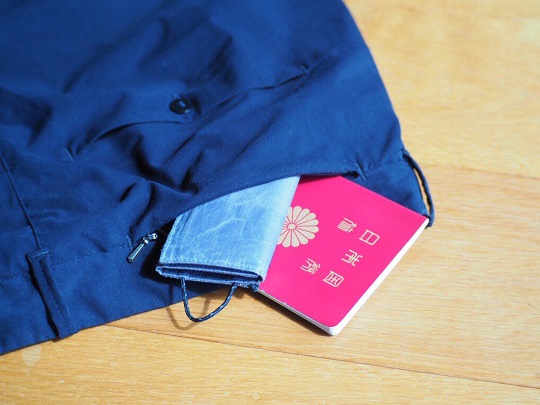 サイドポケット、ボタン付きのバックポケットに合わせ、背面左側上部にはジッパー付きのセーフティポケットもあるため安心!