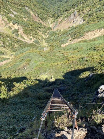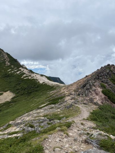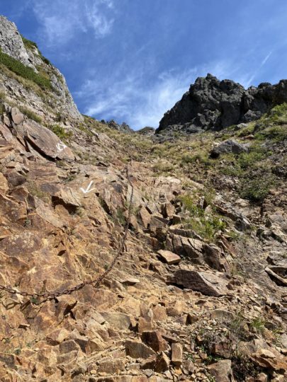 かなりガレガレの所を下って水を補給。ここ最近ほとんど雨が降っていなかったので水量も少ないし、ゴミとかもあってちょっと汚かったですが背に腹はかえれないと思い、腹をくくって水分補給。低山だと浄水器を持っていきますが高山だとイケるかと思いましたが反省ですね。