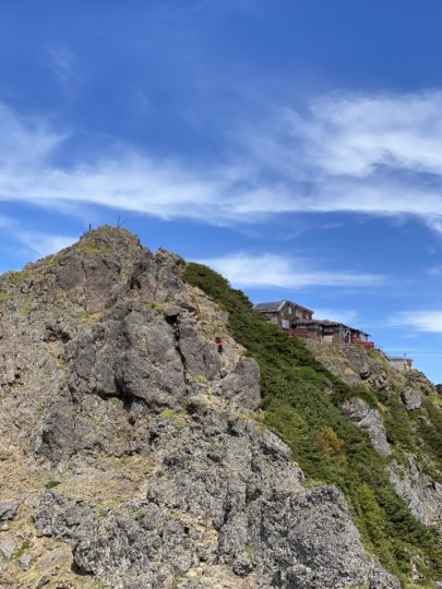 5年ぐらい前に来た時も印象に残ってますが硫黄岳は迫力が凄い!調査に来ている方たちをパシャリ。
