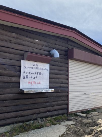 コロナの影響で権現小屋は休業。この先、小屋の休業で苦しむことに。(←行く前に調べとけ!という話ですが)