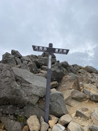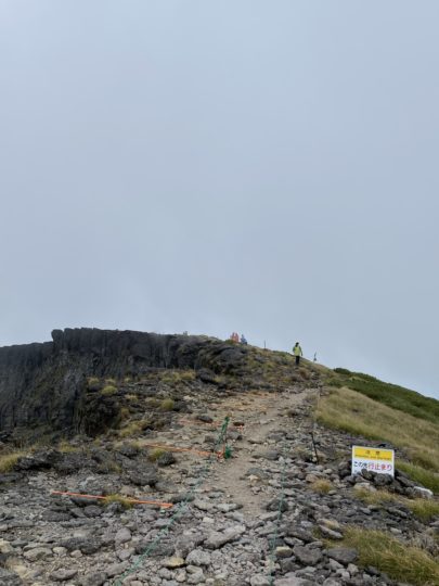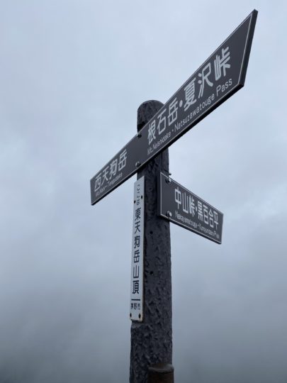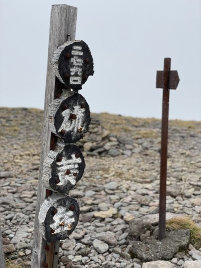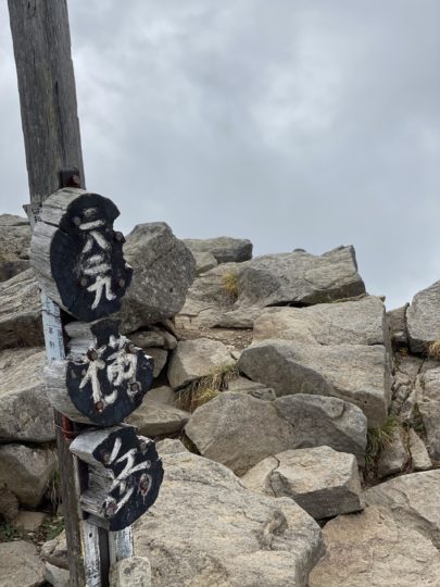 『最後の最後にマジか~』と思うぐらいキツイ登りを終えて蓼科山山頂。強風、ガスガスでソッコ―下山。