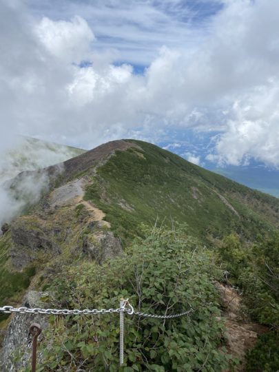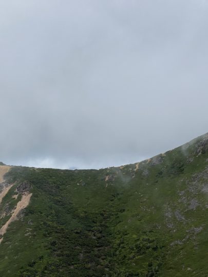 茶臼山、縞枯山、三ッ岳を経て北横ヒュッテ、北横岳。途中からガスってきてルートが分かりずらかったり巨大な山を一人で進んでる事に怖さを感じてた時間帯。ということで茶臼山、縞枯山あたりの写真は撮っていませんでした。正直若干焦りもありましたね。ちなみに水も節約しているので喉も乾いています。笑