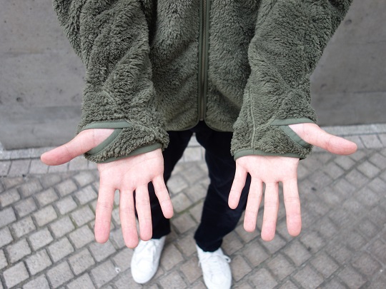 毛足の長いフリース生地は肌触りがよく、温かい空気を程よく包み込んでくれます。