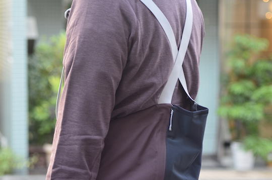 ハーフビブのデザインで、腰回りを寒さから守ってくれます。
