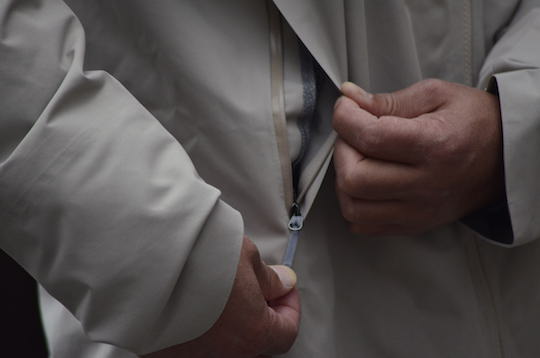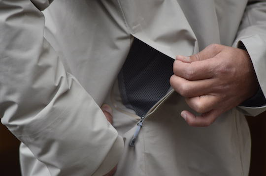 ポケットは止水ジップ。徹底的に雨風を防ぎます。
