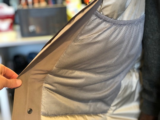 ジャケット内側の右胸にメッシュポケット