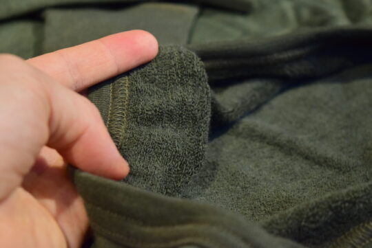 20.5マイクロン混紡繊維を使用し、230g/m2ウェイトのテリーニット構造をしています。
