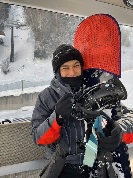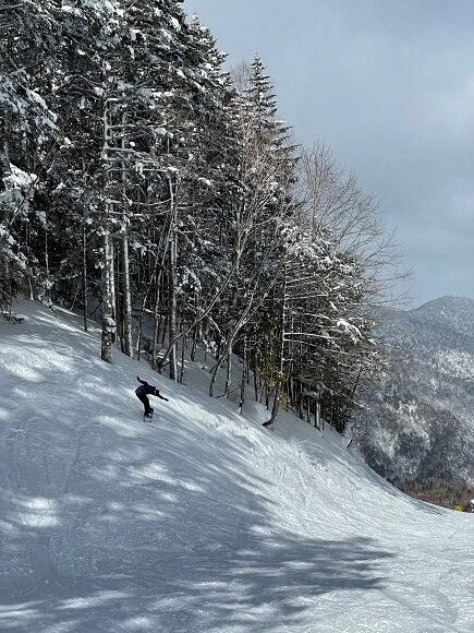 これまでレンタルしか使ったことがないというので滑る道具とウェアはぼくが全部貸して、一からレッスンかなと思いながらスタートしたのですが、滑り出したらなんとか滑れちゃうのでそこからはゴンドラやリフトでのアドバイスだけでフリーで滑らせてました。