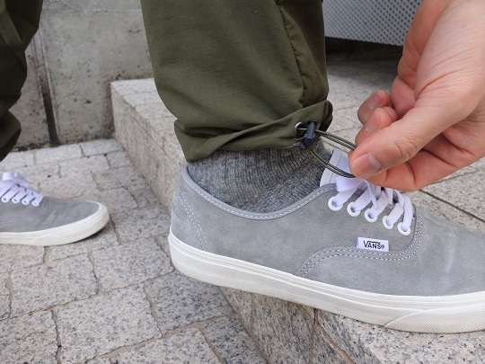 ドローコードがついているので、冷気が入るのを防いだり裾周りのバタつきを抑えたい時に便利です。