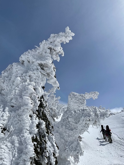 風が強くなってきて大きな斜面を滑ることは少なかったですが、滑る場所滑る場所すべてが清々しさを与えてくれました。