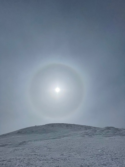 3月の終わりでも樹氷に囲まれ、空を見ればハロの輪っかに包まれて、日頃の生活でくすんでいた心がきれいに洗われるようでした。