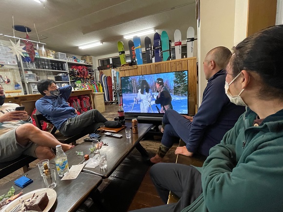 夜は夜でお酒を飲みながら写真を見て一日を振り返り、『私をスキーに連れてって』を見ては昔を懐かしみなが~い一日を楽しみました。