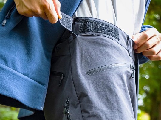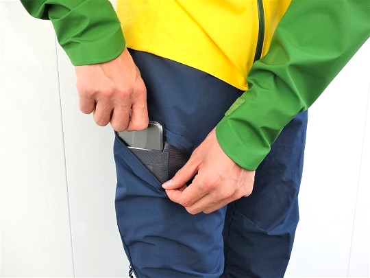 右太もものカーゴポケットは中にモバイルフォンポケットも付属していて、登攀中にポケットの中身が動く煩わしさもありません。