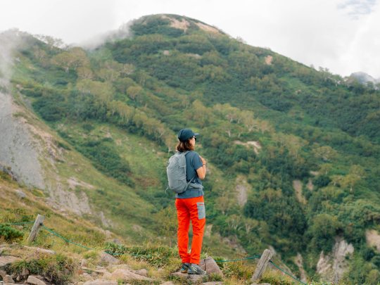 トレッキングはもちろん、クライミング要素を含むマウンテニアリングも想定して開発されているため、もたつきのないすっきりとしたシルエットです。