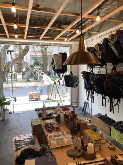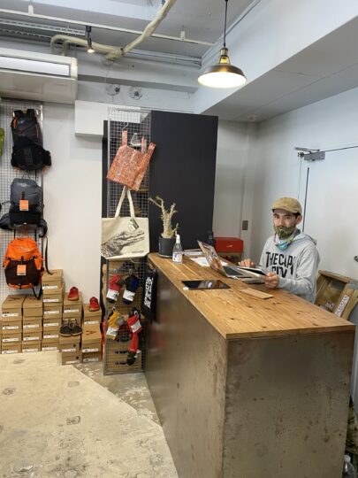 店長カルロス吉谷クンにもタープの張り方をアドバイスして貰い山談義、ギア談議。