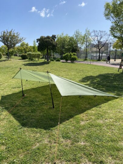 張り方は知っていますが、ぶっつけ本番で山で張るのは自殺行為なので、出勤前に近くの公園で練習しました。