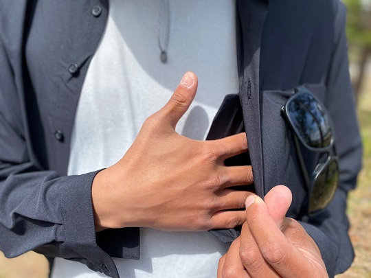 ボタンをひとつ開けるだけでアクセスできる、シークレットポケットも備えています。
