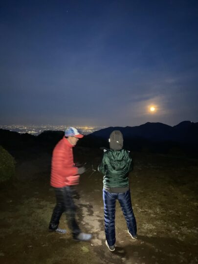 標高1100mぐらいですが日が落ちるとやっぱり寒くダウンを着こんで談笑。