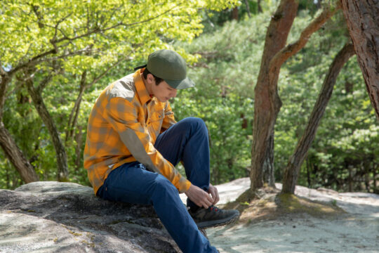 標高を上げると肌寒い今の時期にはピッタリで前を開けたり閉めたりしながら体温を調整しています。ちょっとの汚れぐらいないら気にならない着るのに気を使わない、ついつい手に取ってしまう。私にとって、そんなシャツです。