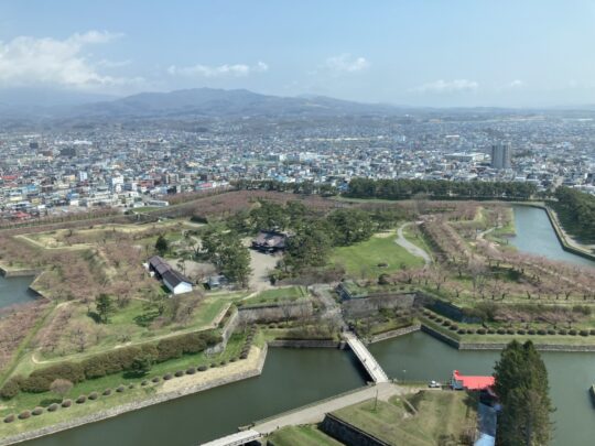 ちょうど桜咲き始めた所でした。一週間遅く来たら桜満開の五稜郭が見えるかもしれませんね。