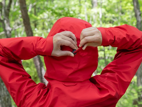フードの縁に形状記憶の芯が入れることで、強風のコンディションでもしっかりと視界を確保できるように工夫されています。