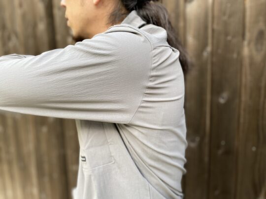 さらにこのシャツ、ただ速乾性が高いだけではなく生地全体がストレッチ素材。