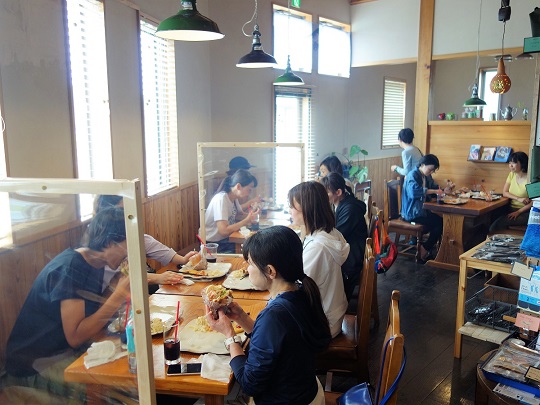 約15kmのトレイルを楽しんだ後は、カフェマシコビト黒子さんの美味しい食事でリカバリーです。