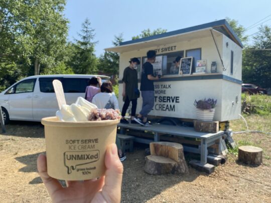 2020年5月に出来たばかりのアイスクリーム屋さん。2021年7月に盤渓山登山口の近く、より広い森の中に移転しました。